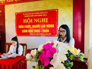 Thực hiện kế hoạch số 25/KH-MNMC3 ngày 10/11/2025 của trường Mầm non Móng Cái 3, kế hoạch tổ chức Hội nghị viên chức, người lao động năm học 2025- 2026. Sáng ngày 14/11/2025, trường Mầm non Móng Cái 3 long trọng tổ chức Hội nghị. Tham dự có 89 cán bộ quản lý, giáo viên, nhân viên, người lao động trong toàn trường. Tại Hội nghị, đồng chí Hà Bích Thủy- Bí thư đảng bộ, Hiệu trưởng nhà trường đã báo cáo kết quả hoạt động năm học 2024- 2025 của 02 trường mầm non Hải Yên và Hải Đông, trình bày kế hoạch thực hiện nhiệm vụ năm học 2025- 2026.
