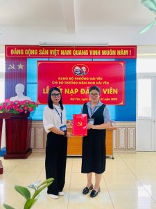 Thực hiện Quyết định số 1280-QĐ/TU ngày 24/4/2025 của Thành ủy Móng Cái, quyết định kết nạp đảng viên cho 03 quần chúng ưu tú của trường mầm non Hải Yên. Ngày 06/5/2025, chi bộ trường mầm non Hải Yên đã tổ chức Lễ kết nạp đảng viên cho quần chúng Nguyễn Thị Hải, Chu Thị Mai và Mạch Thị Khánh Liên. Sau thời gian tu dưỡng, phấn đấu; được sự hỗ trợ của đồng nghiệp, sự quan tâm của lãnh đạo các cấp; kể từ ngày 06/5/2025; 03 đồng chí Nguyễn Thị Hải, Chu Thị Mai và Mạch Thị Khánh Liên vinh dự đứng trong hàng ngũ Đảng, tiếp tục rèn luyện, tu dưỡng phẩm chất đạo đức, không ngừng học tập phấn đấu trong thời gian thử thách để xứng đáng là đảng viên đảng cộng sản Việt Nam.